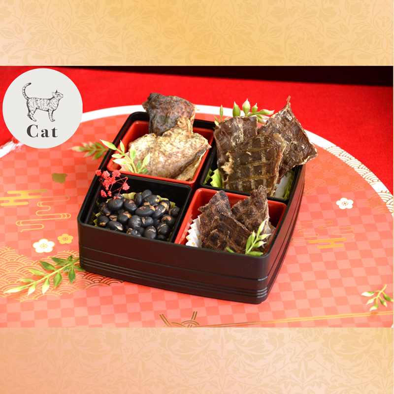 犬用・猫用それぞれ、<松><竹><梅>の3種類を販売。お正月にぴったりな縁起の良い食材を使用したアイテムを詰め合わせた豪華ラインナップです。