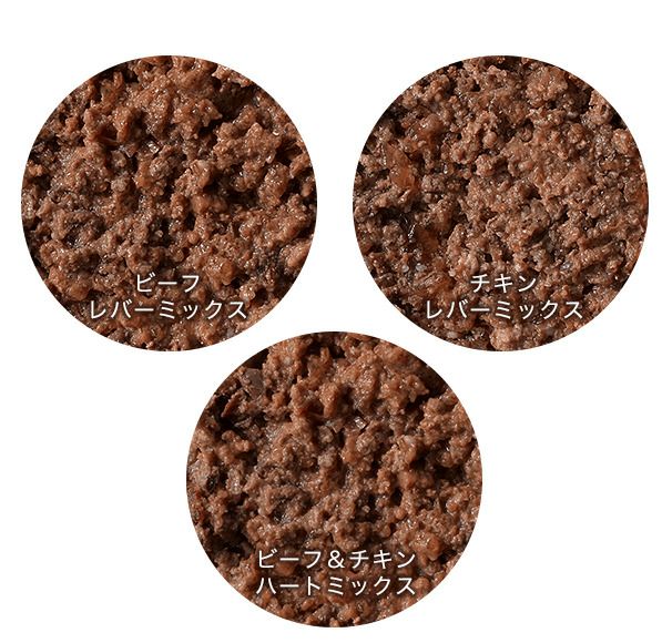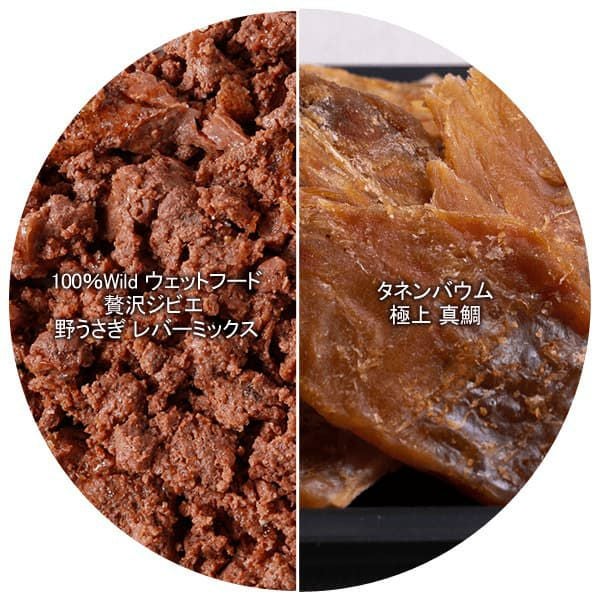 「100%有機 ウェットフード」のビーフ・チキン・ビーフ&チキン、「100%Natur ウェットフード」のジャーマン トラウト、「100%Wild ウェットフード」の贅沢ジビエ 野鹿 レバーミックス・贅沢ジビエ 野うさぎ レバーミックスの6種類セット。1缶ずつお試しいただけます。