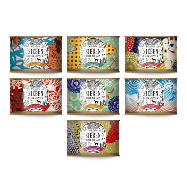 ドイツ産のヒューマングレードの食材を100%使用したウェットフード。7種類のフレーバーを各1缶ずつの7缶セットです。
