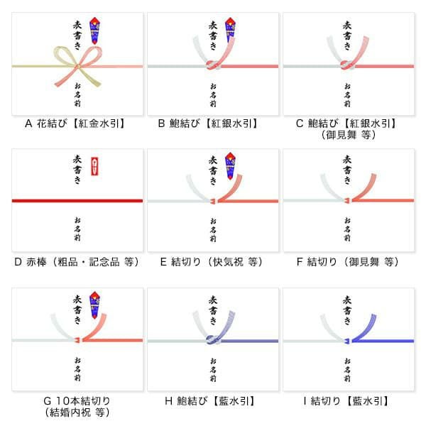 ※「ラッピングなし」を選択した場合は、包装紙の色・熨斗紙・表書き・お名前を指定してもラッピングできかねます。