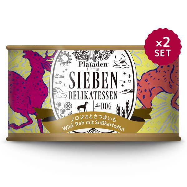 ドイツの大自然で育ったノロジカとアカシカを贅沢に使用。柔らかな赤身肉で、噛むほどに香りと旨みが広がります。さつまいも入りで滋養たっぷり。200gの缶詰2缶セットです。