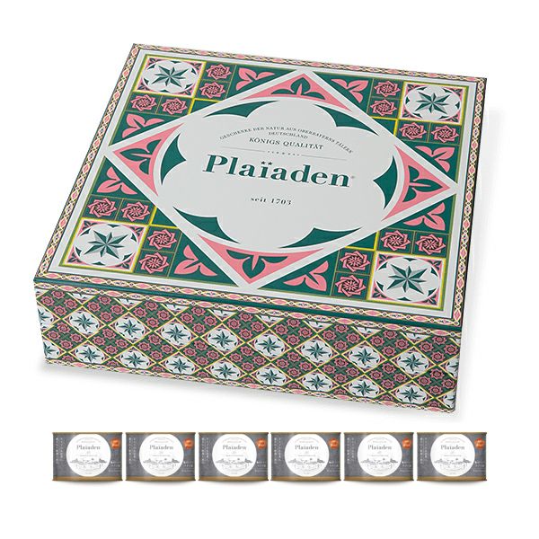バイエルンの野山を駆けて育った新鮮な猪肉を97%使用。低脂肪、低カロリーのウェットフードです。200g缶を6缶セットでギフトBOXに詰めました。