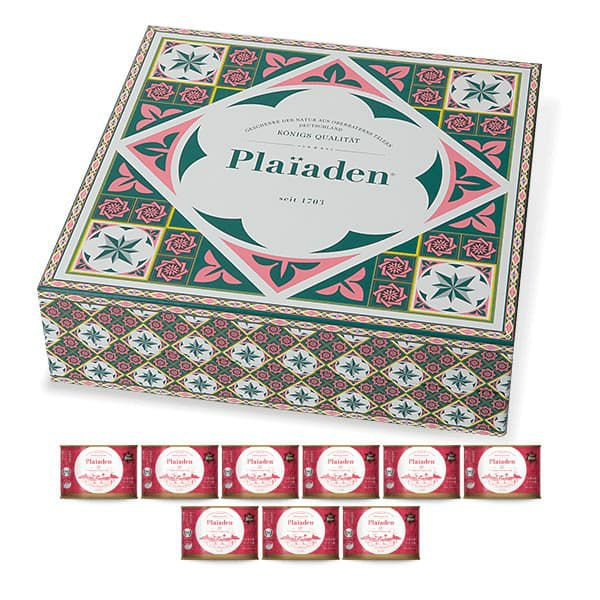 厳しい審査をクリアしたドイツ産Bio豚肉をたっぷり詰め込んだウェットフード。200g缶を9缶セットでギフトBOXに詰めました。