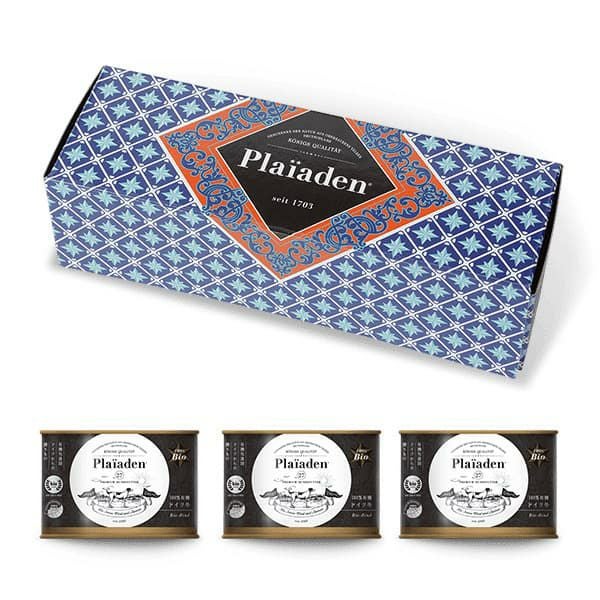 ドイツ産Bio牛肉たっぷりのウェットフード。200g缶を3缶セットにしてギフトBOXに詰めました。