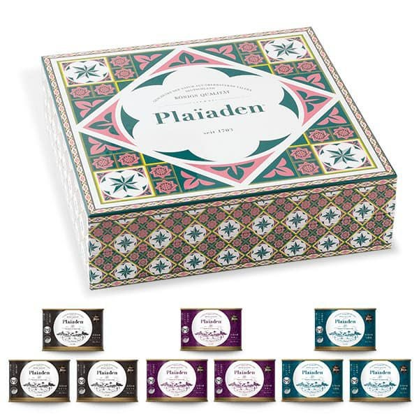 ドイツの大自然を駆けて育った野生の雄鹿肉95%。低脂肪、高タンパクのウェットフードです。200g缶を9缶セットでギフトBOXに詰めました。