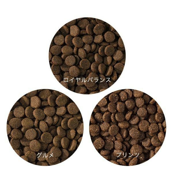 「プレミアムドライフード」のロイヤルバランス、グルメ、プリンツの50g入り各1袋セット。