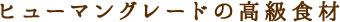 ヒューマングレードの食材ヒューマングレードとは、人間の食品と同じ安全基準を満たした食材のこと。品質と鮮度にこだわって厳選しています。