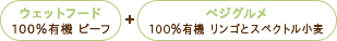 ヒューマングレードの食材が持つ栄養を、無駄なく愛犬のからだへ届けるために、消化吸収率にもこだわっています。消化吸収に優れた動物性タンパク質をふんだんに使用し、その働きを助ける食物繊維やビタミン、ミネラルをバランスよく配合。また「100%有機ウェットフード 」「100%有機ベジグルメ」には、腸内の善玉菌を増やし、腸内環境を整えるイヌリン(プレバイオ ティクス)が含まれています。愛犬の消化器官や排出機能が正常に働き始め、腸内環境が整うことで体力や免疫力もアップします。