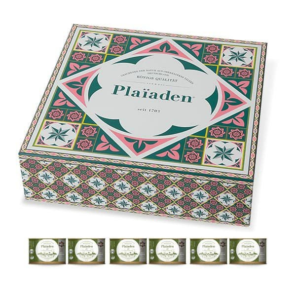 ドイツの大自然を駆けて育った野生の雄鹿肉95%。低脂肪、高タンパクのウェットフードです。200g缶を6缶セットでギフトBOXに詰めました。