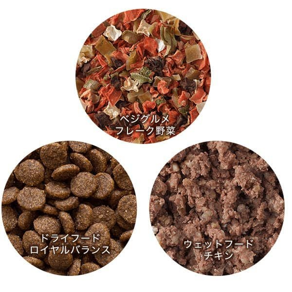 プレミアムドライフードの「ロイヤルバランス」「プレミアムケア」「グルメ」「プリンツ」の中からお一つお選びいただけます。